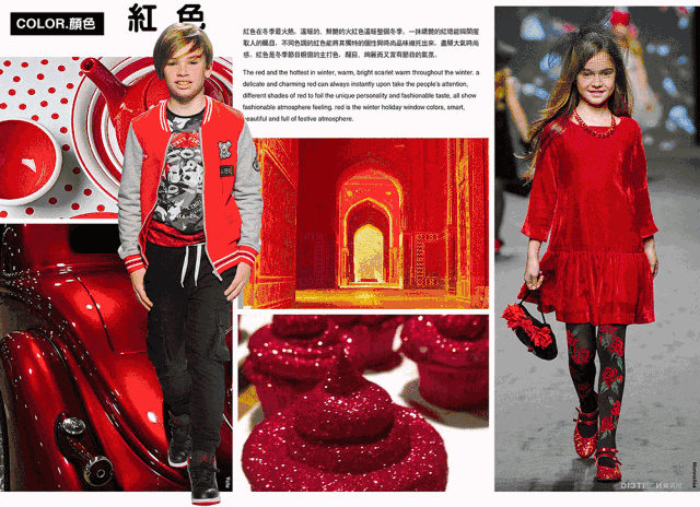 一方面方便家長直接找到自己想要的童裝顏色,另一方面在小朋友的眼里,大量重復出現的色彩往往會第一眼引起他們的興趣。
