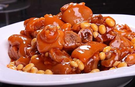 食材: 黃豆、豬蹄、蔥、姜、八角、糖、鹽 做法: 1、黃豆提前浸泡半天; 2、油熱時(shí)下生姜片、蔥段,八角,豬蹄爆炒,然后加醬油,料酒翻炒; 3、加水沒(méi)過(guò)豬蹄,大火燒開(kāi)。然后轉(zhuǎn)小火,燒 20 分鐘; 4、加入黃豆大火燒開(kāi),加糖、鹽。轉(zhuǎn)小火慢慢煲,到豬蹄燉爛,放入蔥花即可。