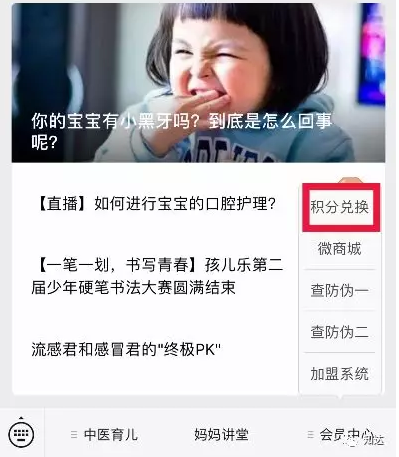 進入孩兒樂公眾號,點擊會員中心—積分兌換,進入積分商城首頁