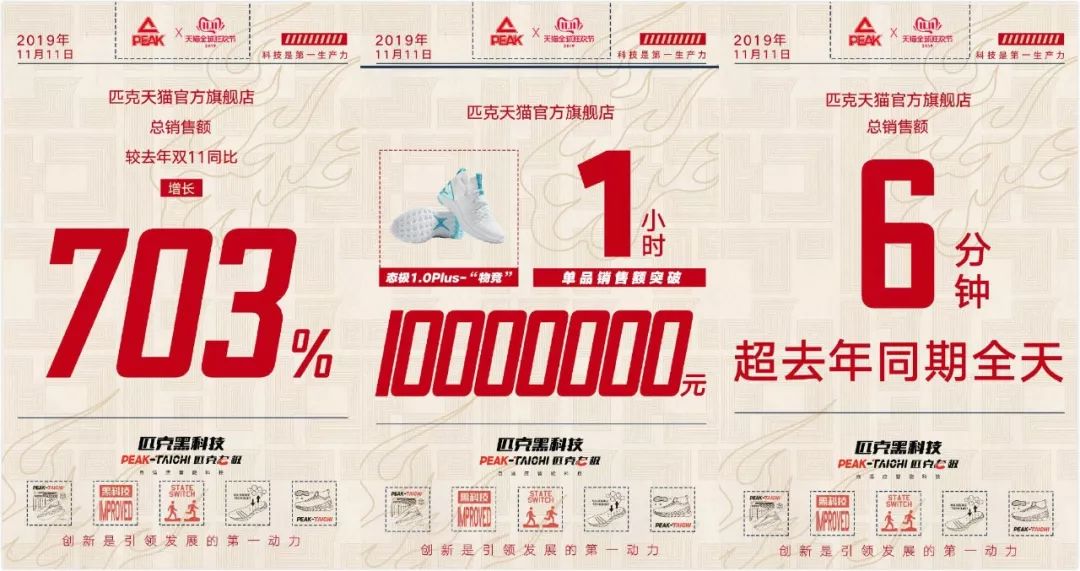 年前12月底匹克透露,態極產品線全年銷售量超250萬雙,銷售額破10億。年初排名國產運動品牌線上第六七名的匹克,到年末時僅次于安踏、李寧,時隔多年又做到線上第三。 一個新品如何做到一年帶貨10億,給匹克帶來類似“中國李寧”般的回歸?怎么跳出創意迷信,在跌跌撞撞中走出自己的步子? 一、營銷策略: 打爆態極大單品,態極科技跨品牌增長 匹克曾一度做到國產運動品牌的第一,而后經歷退市等一系列暗淡時刻,掉到第二梯隊。直到2018年底研發出態極科技,才在產品上,找到騰飛的后盾。 品牌要基業長青,毫無疑問,最基礎是產品有核心競爭力。態極科技之于匹克,猶如boost科技之于阿迪達斯,AIR科技之于耐克。態極科技,是一種“遇軟則軟,遇強則彈”的神奇新材料。用鞋友們的話說,“像踩在云上、棉花上”。